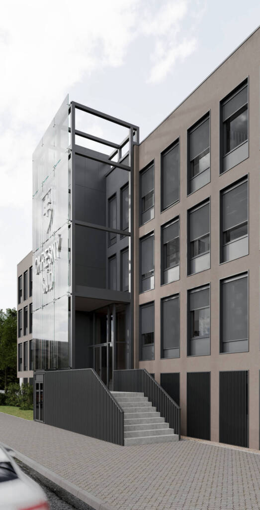 Projekt rieši obnovu a modernizáciu budovy Okresného súdu v meste Trebišov. Budova Okresného súdu (štvorpodlažná časť) bola daná do užívania v rokoch 1967-68. V roku 2014 bola k budove pripojená východná dvojpodlažná časť pôvodne patriaca okresnému úradu – z dôvodu rozšírenia kapacity kancelárskych priestorov. Zrealizovalo sa prepojenie oboch častí v pôvodnom podchode, ten sa nachádzal v úrovni 1.NP medzi oboma budovami. Súčasne bolo realizované v danom čase bežné zateplenie fasády polystyrénom a výmena okien za plastové. Náš návrh rieši budovu komplexne. Okrem zvýšenia energetickej náročnosti výmenou a estetickou modernizáciou obalovej konštrukcie, rieši aj kompletnú obnovu interiéru, pozostávajúcu z nového dispozičného riešenia spĺňajúceho požiadavky užívateľov a celkovú debarierizáciu objektu.