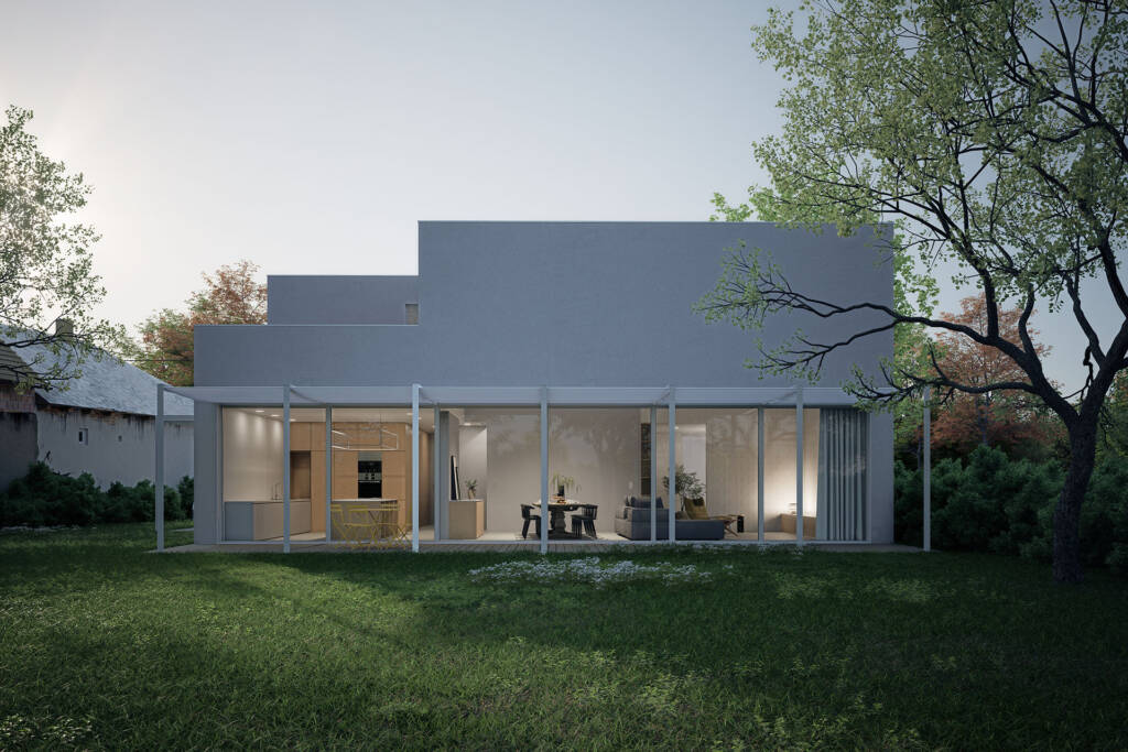 Návrh rodinného domu v obci Borša reflektuje potreby bezdetného manželského páru, pre ktorý vznikol kompaktný, no priestorovo veľkorysý koncept bývania. Dom je situovaný na nárožnej parcele a jeho dvojpodlažná dispozícia jasne oddeľuje dennú obytnú časť od nočnej – prízemie slúži ako otvorený spoločenský priestor, zatiaľ čo poschodie je vyhradené pre súkromie.